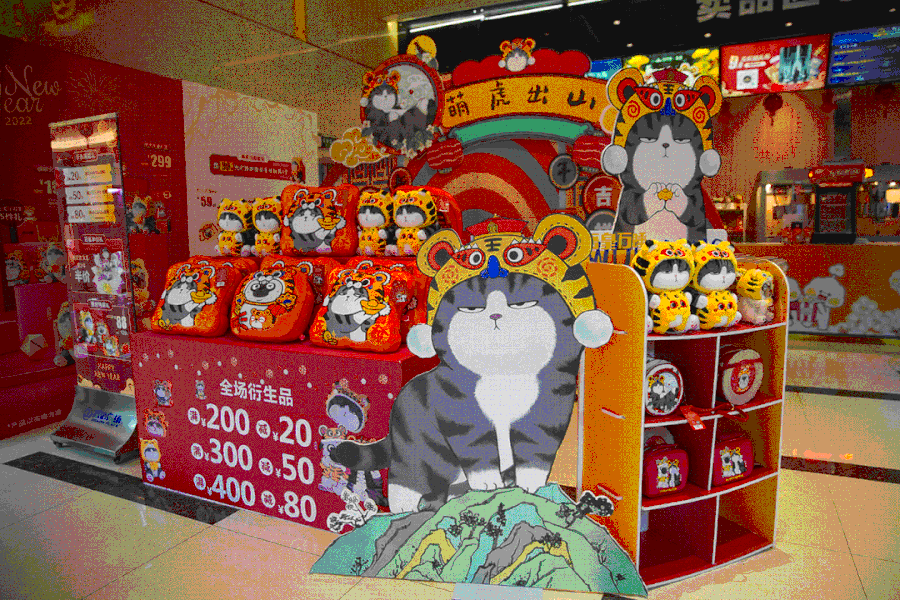在万达影城门口里就可以买到它的周边产品哦~公仔、抱枕、帆布袋、盲盒...喜欢的朋友快冲!