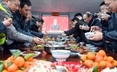 工棚内外忙得不亦乐乎,一盘盘新鲜水果、可口菜品、热乎饺子端上餐桌。“政府会我们发放稳岗补贴,公司为我们准备了年夜饭活动,今年的春节也很有年味!”来自湖北的电工李勇喜笑颜开。