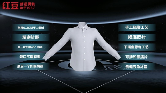 据介绍,0感舒适衬衫的研发过程凝聚了诸多“奢侈元素”:邀请Armani前设计副总裁Patrick Grandin提供高定设计灵感,10处高定工艺,每件衬衫都经历102道工序,背后是海量的场景模拟测评,最终打造出最符合中国男人身材的优选衬衫;尤其是“中奥两国功能纤维混纺”面料,细腻、轻柔、透气,以满足“0感”体验,还采用了首创红豆超细旦纤维配比,使得衬衫得到机洗后依旧免烫的效果,既亲肤舒适,又保持挺括有型;红豆男装还与瑞士HeiQ海屹科开展合作,在衬衫中加入瑞士专利HeiQ高分子,让衬衫能够感知体表温度,从而实现智能控温的效果,这也是瑞士HeiQ公司革命性的纺织技术HeiQ Smart Temp高分子聚合物首次大规模应用于男士衬衫,是舒适与科技的完美结合;最特别的是在全球范围内甄选出三大奢侈品级辅料完成整体制衣,包括中国景德镇陶瓷纽扣、德国Wendler高端有纺衬、德国Gutermann高端缝纫线。一针一线、千锤百炼,处处彰显细节与品质。所以这件“新作”完全担得起“奢侈品”的称号。