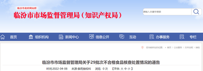 中国质量新闻网讯 近日,山西省临汾市市场监督管理局通告不合格食品核查处置情况,涉及襄汾县太平米醋酿造有限公司生产的小米白醋。