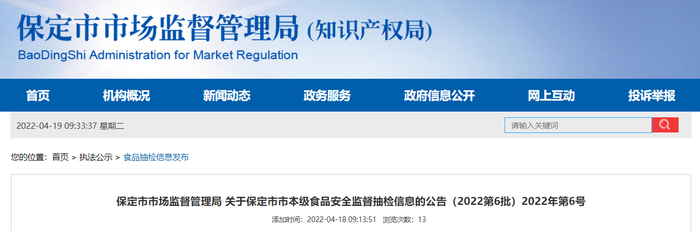 中国质量新闻网讯 2022年4月18日,河北省保定市市场监督管理局发布关于保定市市本级食品安全监督抽检信息的公告(2022第6批)2022年第6号。本次发布的监督抽检信息涉及21大类。其中,抽检食用农产品181批次,不合格6批次。