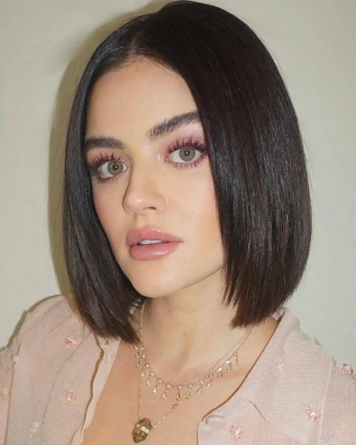Lisa的波波头就是很好的短圆脸模版,止于下巴处为整个发型的最低点,越往后脑勺处越提高,就能利用修长的脖颈调整整体比例,同时也会显得脸更小。