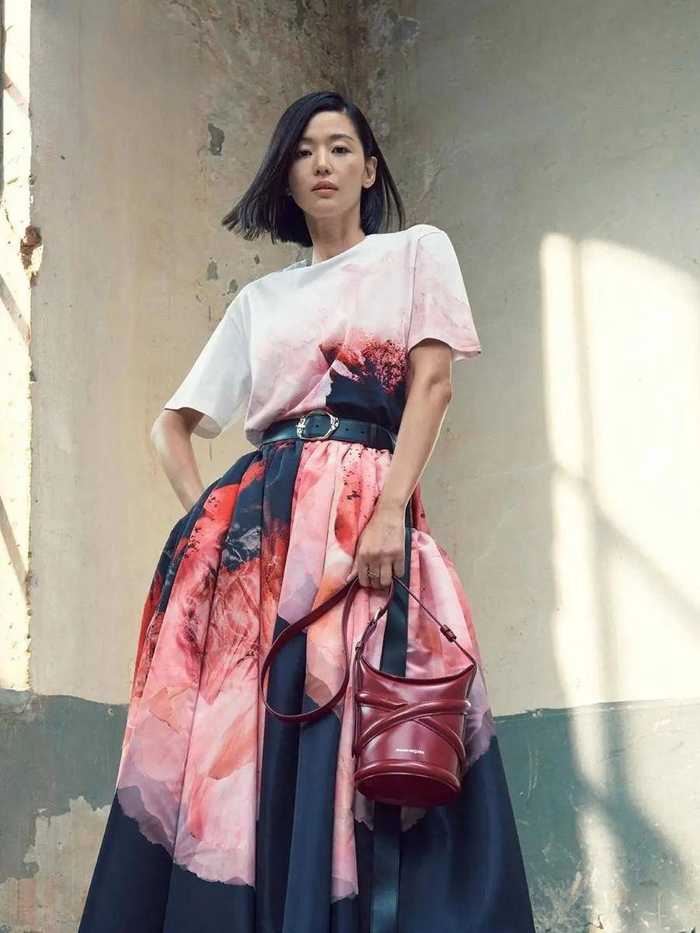 下颌的明显转折其实是一种轮廓清晰的优势,只不过有时候过于生硬会缺少柔美之感。宋慧乔的思路就是用及肩的长度搭配内扣式卷发,半“包裹”住脸型,同时留下单边清晰的外轮廓,既达到了柔化的效果,又能避免两边轮廓露出产生的阔面感。