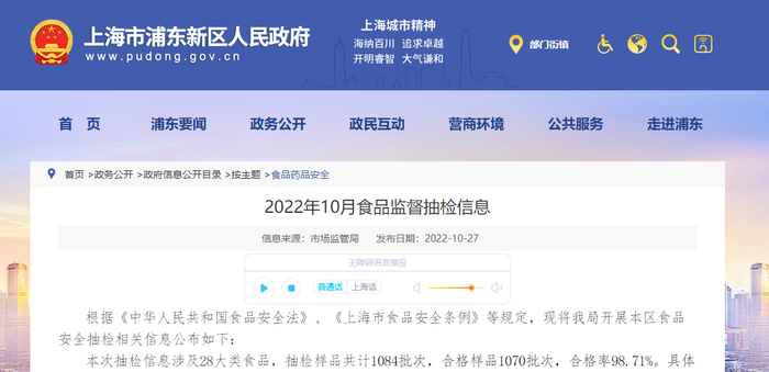 中国质量新闻网讯 近日,上海市浦东新区市场监督管理局发布2022年10月食品监督抽检信息,涉及28大类食品。其中,抽检乳制品18批次,不合格样品数为0批次,样品不合格率为0%。
