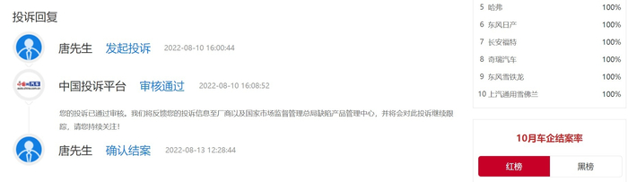 好消息是,投诉约两天后,星途厂家便与车主取得联系。平台工作人员日前回访车主了解到,厂家为唐先生更换了一个全新的变速箱,并为其加满两箱油作为补偿。车主遂选择结案。唐先生表示,自更换变速箱至今,车辆一直正常使用,也没有再出现类似问题。
