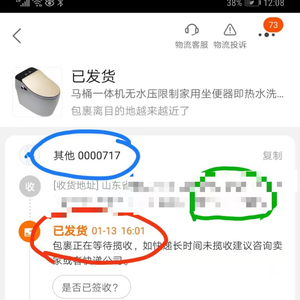 1月15日,商家向吕女士发送了一份发货证明,落款为“陕西盛财物流有限公司”。相关证明称,发货方为“亚洁马桶”,公司承运的商品已于1月15日完成配送,且系本人签收。吕女士指出,上述证明中的快递收件人电话并不是自己下单时填写的号码,而是一个13位数的空号。