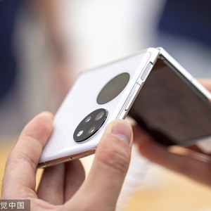 华为折叠手机P50 pocket。视觉中国 图