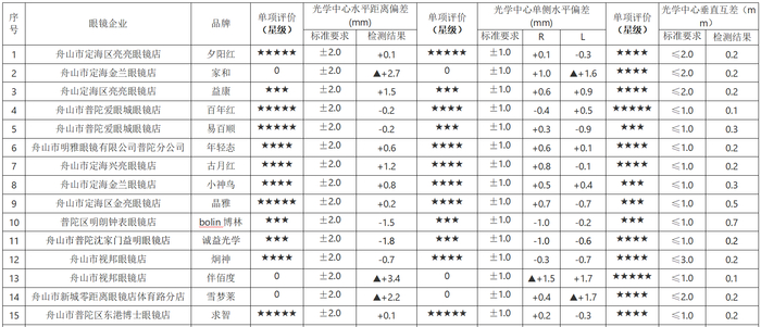 家和、伴佰度、雪梦莱等样品光学中心距离不合格