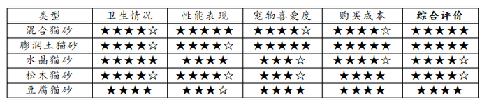 不同类型猫砂的综合评价