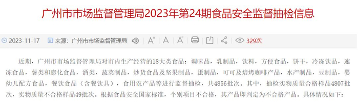 近日,广州市市场监督管理局通报了2023年第23期、24期食品安全监督抽检信息。该局两期共对广州市内生产经营的18大类食品抽查9700批次,实物质量不合格样品共95批次,不合格率不到1%,但95批次不合格样品竟然就有4批次涉及知名生鲜连锁钱大妈。