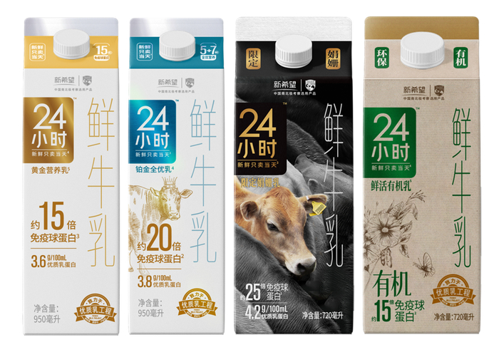 另一方面,新希望乳业持续推动产品创新迭代,强化低温产品矩阵,提升品类结构和竞争力。明星产品“24小时”系列鲜牛乳不断升级后,已迭代至4.0版本,所含免疫球蛋白也从普通鲜奶的10倍提升为25倍,满足消费者更多营养需求,引领品类升级潮流。2023年新希望乳业新品收入占比达12%,“24小时”高端系列产品同比增速近40%。