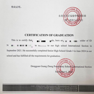 陈先生提供的“毕业证明”照片显示,其中写着“兹证明:……该生于2021年9月入读我校高中国际部,于2024年6月顺利完成高三,完成学业符合毕业要求。”证明右下角盖章为东莞市光正实验学校国际部。