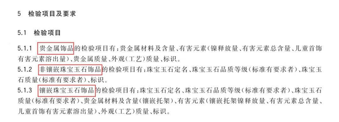根据《珠宝玉石及贵金属产品抽样检验合格判定准则》(GB/T 33541 - 2017)的规定,贵金属饰品、非镶嵌珠宝玉石饰品、镶嵌珠宝玉石饰品的检验项目有所不同。