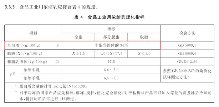 食品工业用浓缩乳有全脂、部分脱脂、脱脂的区分,蛋白质含量要求都是一样的,即≥非脂乳固体的34%。据记者估算,若以非脂乳固体最低下限17.5%计算,即食品工业用浓缩乳蛋白质含量至少为5.95g/100g。若对比《食品安全国家标准 生乳》(GB 19301-2010)中生乳的蛋白质含量最低下限2.8g/100g,简单来说,即食品工业用浓缩乳的蛋白质含量至少约为生乳的2倍。