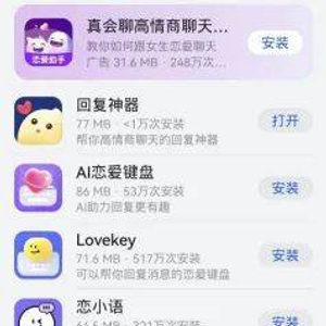 《消费者报道》记者查询发现,目前各大手机应用市场中有多款类似“哄哄模拟器”的APP,如“回复神器”“真会聊高情商聊天回复神器”“恋爱情侣聊天话术键盘”等。回复神器APP主页面显示,其提供“追爱技巧”“土味情话”“帮润色”等内容。