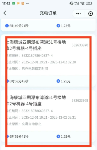 刘先生回忆,12月1日晚8时许,他将电动自行车停放在康城小区4期瀑布湾道51号楼非机动车停车库,通过“享充充电”小程序启动充电。次日清晨,他查看手机时发现,凌晨2时和5时分别收到两笔1.25元的扣款通知。“总共扣了2.5元,时间是紧挨着的,明显是重复计费。”刘先生立即通过小程序反馈问题,但系统始终无法上传手机截图。他随即拨打充电桩操作指南上标注的报修电话,却提示为空号。“钱不多,但企业服务总该讲诚信吧?”刘先生无奈地表示。