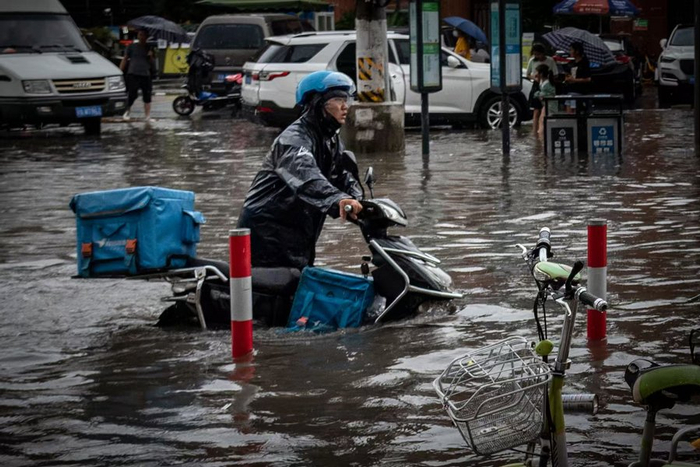 可见,上南路东端到川周公路,路幅狭窄、路况较差的情况集中于周康路至周园路段,全长约2.3公里。杨女士在川周公路沿线已经居住了20多年,每天早晨都要沿川周公路向东前往张江上班。她告诉记者,川周公路不堪重负,路况给居民出行带来了不小的困扰。狭窄的路幅带来拥堵是家常便饭,复杂的路况更令她“开车不敢踩油门,走路不敢走路边”。她发来几张前几年夏天暴雨时的照片,只见川周公路积水没过小腿,路人艰难地推着电动自行车蹚水前行……此外,记者体验中还发现,一旦入夜,川周公路仅南侧有一排太阳能路灯,照明条件差,整体昏暗,在布满红白隔离桩且坑洼不平的路边行走,还有一定的安全隐患。