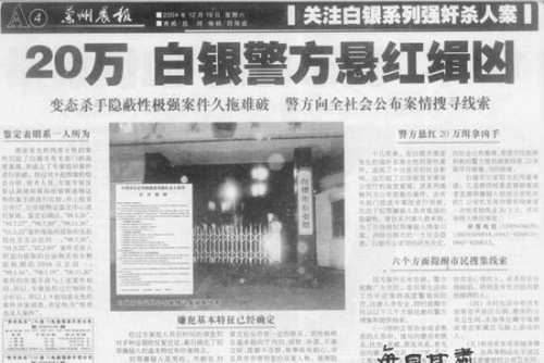 8月26日,历时28年的甘蒙'8•05'系列强奸杀人残害女性案告破,这一案件也被称为“白银案”。