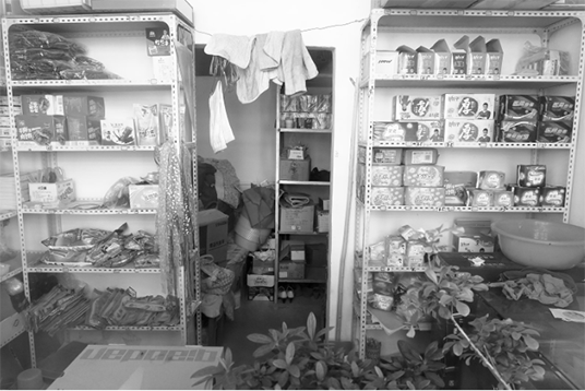 疑犯承包的学校小卖部一半是售货区,一半用来居住