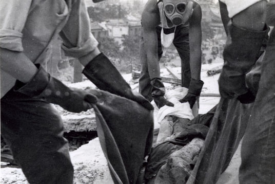 战士们就用手去扒,指甲都脱落了,双手血肉模糊。在市委大院,一营战士扒了一夜,扒出76具尸体。