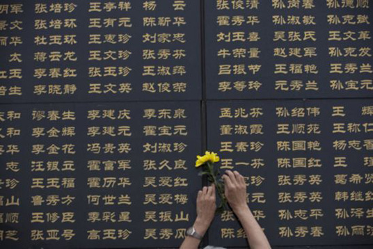 2008年,唐山建了一个新的地震遗址纪念公园。广场上立起一座黑色的大地震罹难者纪念墙,用金色的字体写上死难者的姓名。失去亲人的人,有了可以祭奠的墓碑。