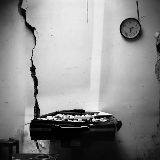 墙体上的裂缝,显示着这场地震的强度。时间仿佛静止,我能想象到在地震前,这个麻将馆发生的一切,几个街坊凑成一桌,打打牌喝喝酒。然而现在,曾经简单的生活被摧毁得荡然无存。我只能听到屋外救援队,寻亲的人,以及受灾者的声音。