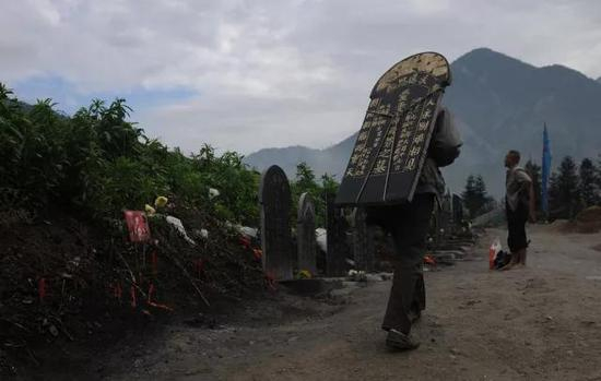 雨后的山道湿滑且泥泞,男人低着头,弯着腰,从山脚下缓步前行,每走三到五米,就要停下来歇一下,他的背上,背着妻子的一生“1971年6月19日——2008年5月12日”。