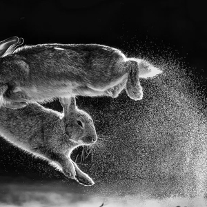 最终,匈牙利摄影师乔鲍·达罗奇(Csaba Daroczi)凭借一张两只野兔在空中跃起的黑白照片,从来自 73 个国家和地区的摄影师提交的 14000 多幅图像中脱颖而出,获得大赛总冠军并获得“2019 年度自然摄影师”称号。