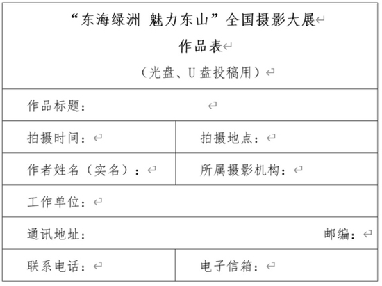 投稿作品以光盘(CD-R或DVD-R)、U盘存储形式邮寄至:北京市东城区东四十二条48号中国摄影报社活动部东山全国摄影大展办公室收(100007)