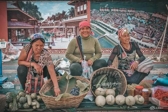 《安居乐业》 摄影:万里鹏程36727 云南澜沧拉枯族群众在农贸市场上交易自产的农产品,身后是即将新建的新型综合交易市场和安居房效果图。