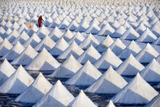 《盐田晨光》 摄影:思穹无痕_74286 2017年10月拍摄于甘肃省张掖市高台县罗城镇盐池村“千年盐田”,当地盐农正在铲挖晾晒原盐,在精准扶贫政策支持下,原盐产销已成为当地盐农增收致富的特色产业。