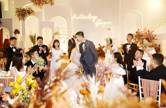 “伴郎伴娘团的位置设计与互动做的很好,丰富了整体的故事性。新郎新娘的情绪表现也很到位,注意新郎的左手动作,直接去拥抱新娘产生更多链接会更合适。”(图虫摄影师@人像摄影师赵鑫)
