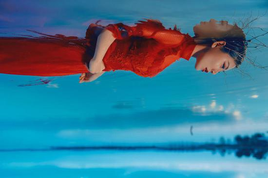 “翻转画面的非常规视角,很吸引眼球。蓝色水面环境与主体红色服装的对比很强烈,让主体更加突出。”(图虫摄影师@高老狮)
