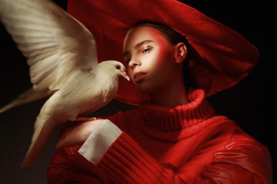 “漂亮的色块搭配,鸽子红色的眼睛堪称点睛之作。鸽子和人物的动作暗示两者之间若隐若现的关联。晦涩的布光正让这种关联的气氛更显突出。” (图虫摄影师@月海沫)