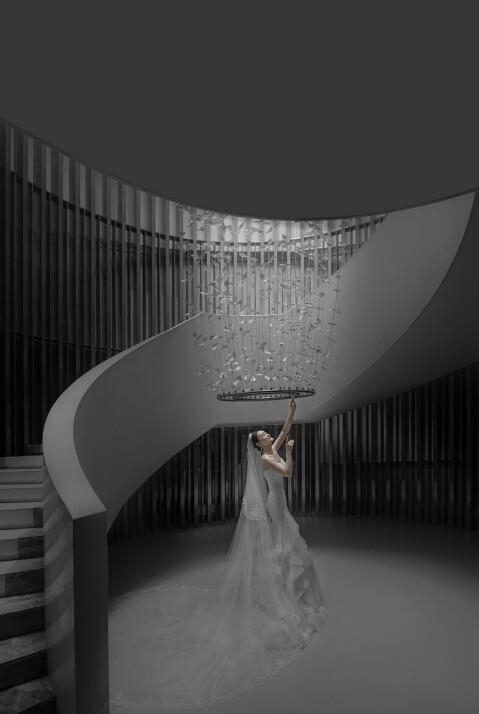 “整体风格统一,运用明暗对比突出主体人物。注意下人物的摆姿细节,特别是第4,5 张里面新娘的手臂手肘的处理。”(图虫摄影师@摄影师雙)