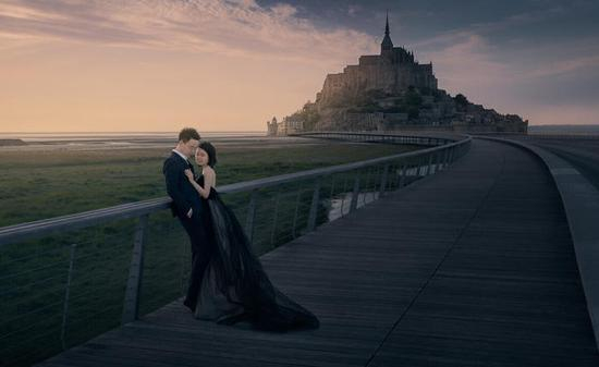 “人物与远处的建筑相互平衡,并且通过道路延伸链接,在展示主体的同时很好的体现了画面的空间感,也体现了对未来憧憬的象征意义。注意下这里新郎的动作细节,右手与新娘有更多互动连接的话会更能突出二者的亲密关系。”(图虫摄影师@摄影师-周大福)