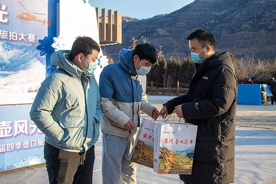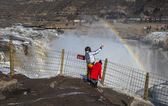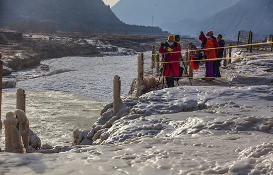 恰逢2021年的第一天,依据景区传统举行了“迎接第一位游客”庆祝活动。来自陕西西安的两位游客,在锣鼓声声中,接受壶口景区送上的新年礼物和美好祝福,感受壶口瀑布冬日的冰瀑玉壶奇美景观。