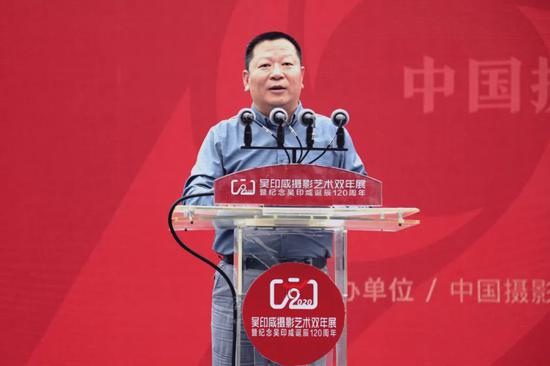 9月21日,第二届吴印咸摄影艺术双年展暨纪念吴印咸诞辰120周年活动在江苏省沭阳县吴印咸故居开幕。图为中国摄影家协会分党组书记、驻会副主席郑更生在开幕式上致辞。