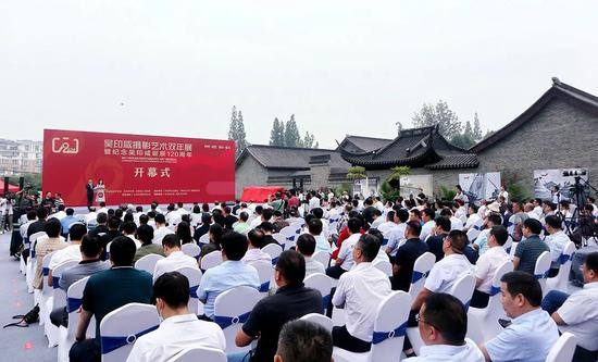 9月21日,第二届吴印咸摄影艺术双年展暨纪念吴印咸诞辰120周年活动在江苏省沭阳县吴印咸故居开幕。图为开幕式现场。摄影:许瀚文