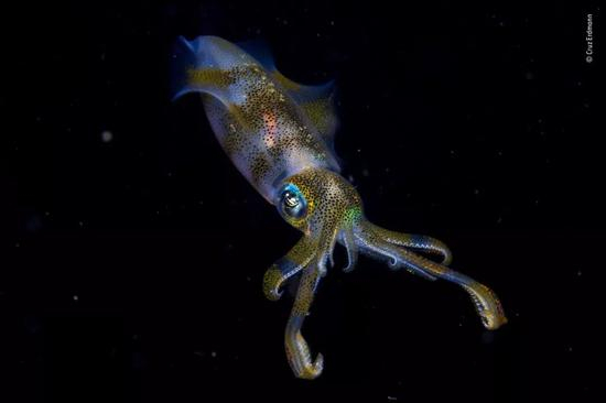 14岁的新西兰少年Cruz Erdmann用和父亲在印度尼西亚莱姆贝海峡夜间潜水时拍下的莱氏拟乌贼照片,赢得了比赛的另一个最高荣誉——年度青年野生动物摄影师。