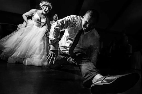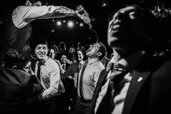 亚军得主Xenia Shabanova告诉人们,这张照片是在新人Chris和Natalie大婚前一晚,用无人机在酒店外拍下的。“我想表现新娘和新郎在步入婚姻殿堂前的心情,”Xenia Shabanova说,“画面里,新娘正在端详婚纱,而新郎则是喝一杯能让自己平复下来的威士忌。这可能也是他们以后婚姻生活的一个折射吧。”