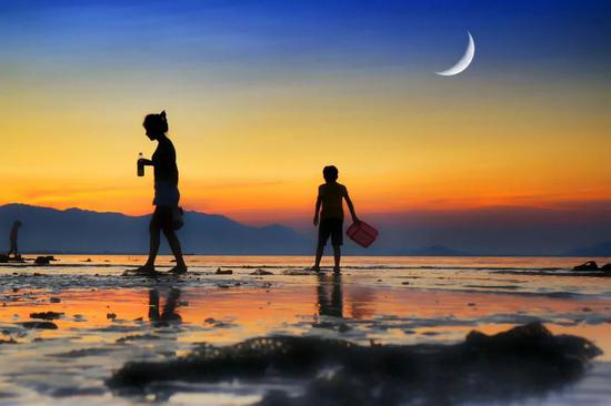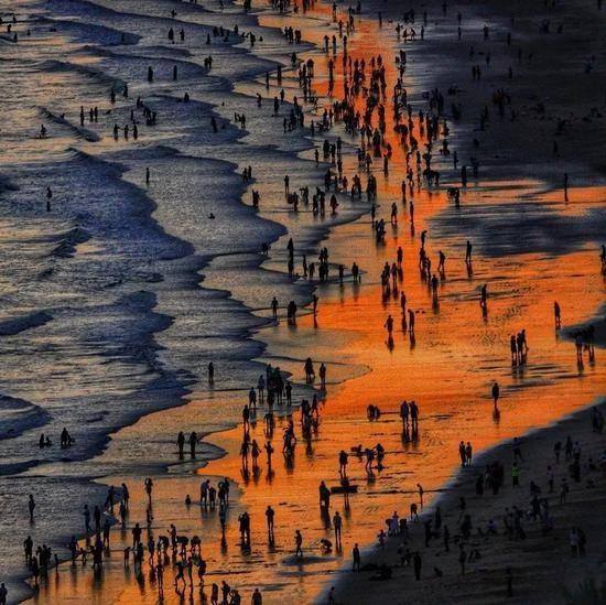 三亚湾的傍晚,霞光漫映海滩,美,无以言表……