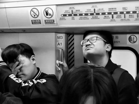 2019年10月,使用努比亚Z17S拍摄于北京。上班路上,地铁里的两位乘客,很像交往已有二十多年的两位挚友。
