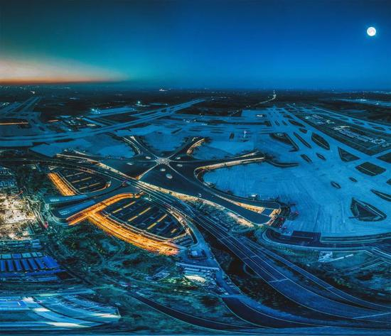为庆祝中华人民共和国成立70周年,北京大兴国际机场于10月1日前投入运营,作为国人奋进的里程碑,预示着国人进取,国家富强。北京大兴国际机场外型似凤凰,预示着腾飞向上,美好的开始,故名凤凰唱晓。