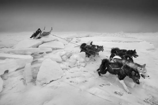 这位冰岛摄影师认为,格陵兰的雪橇犬是北部有史以来最伟大的英雄之一。他以黑白的画面向雪橇犬以及北极的生活方式致敬。由于全球变暖的破坏性影响,两者都面临灭绝性的威胁。