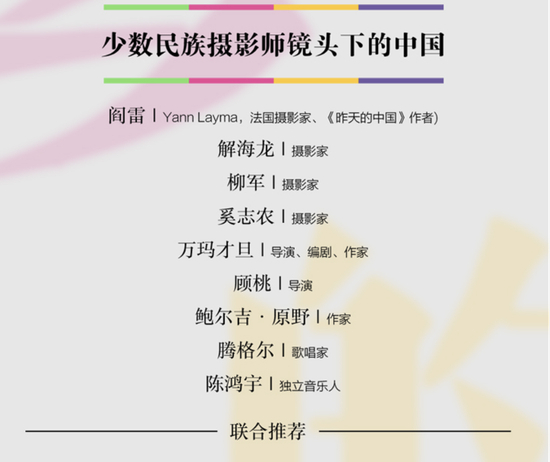 这本书也得到了8位知名人士的一致推荐,他们中有摄影师、作家、歌手等,如以拍摄中国影像知名的法国摄影家阎雷、作家万玛才旦和歌唱家腾格尔、独立音乐人陈鸿宇等。
