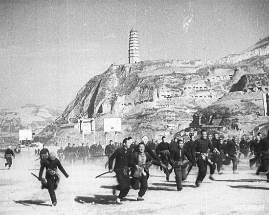延安宝塔山下,军事训练热火朝天。程默 摄