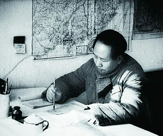 1946年,毛主席在枣园窑洞内写作。 程默 摄