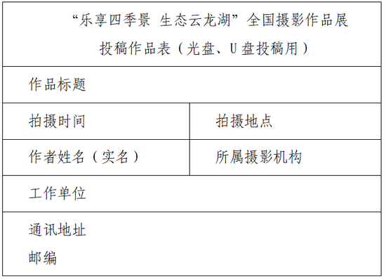 官方网站:投稿者须在诠摄汇网“参展”专区(dz.cppfoto.com)“云龙湖全国摄影作品展”中注册,并按要求填写真实个人信息。主办单位保证不公开或泄露投稿个人非公开信息。投稿作品为JPG格式,图片统一处理为长边800-1000像素,文件大小控制在200-500KB以内。