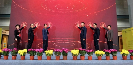 ▲参加开幕式的嘉宾代表,中共淮安市宣传部部长、秘书长李森(右三),淮安市人大副主任范更生(左三),淮安市人民政府副市长韦峰(右二),淮安市政协副主席、党组副书记周毅(左二),淮安市慈善总会会长陈洪玉(右一),淮安市旅游协会会长朱友冬(左一)共同为第三届“郎静山杯”中国新画意摄影双年展启幕。